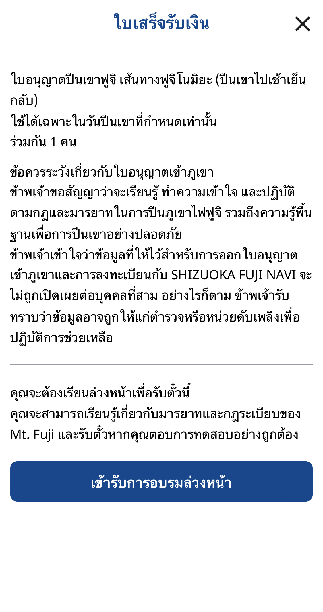 โปรดแสดงใบอนุญาตเข้าต่อเจ้าหน้าที่ที่ทางเข้าของเส้นทางเดิน